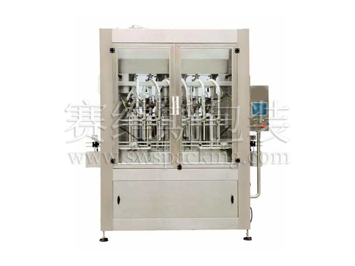 該機為伺服電機驅(qū)動的柱塞式灌裝機,實行自動進(jìn)瓶、變速(可設(shè)定)灌裝、自動出瓶。